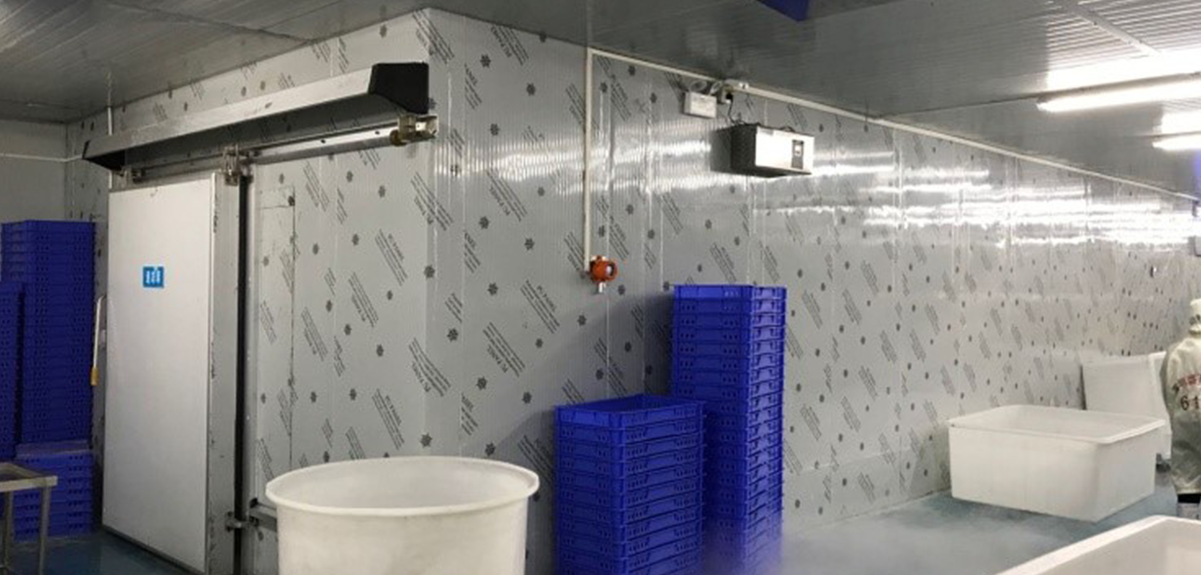 两个海产速冻库,,,,,两套单机组装备均接纳ggpoker官网精机LT-S-L系列宽温区双级低温冷冻压缩机2台,,,,,冷库蒸发器接纳平板搁架,,,,,内置循环风机。。。。。设计温度:-20℃